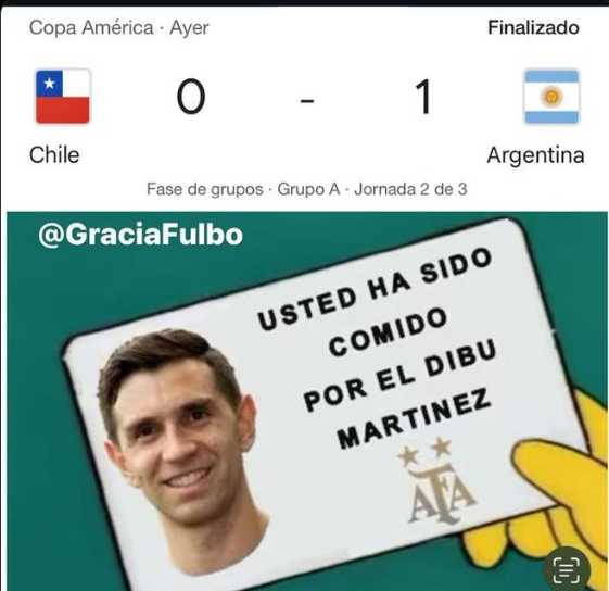 La Selección Argentina selló su clasificación a la próxima ronda de la Copa América luego de ganarle a Chile este martes. Luego del encuentro, distintas situaciones polémicas encendieron las redes sociales, pero los usuarios no dejaron pasar el momento para compartir memes.