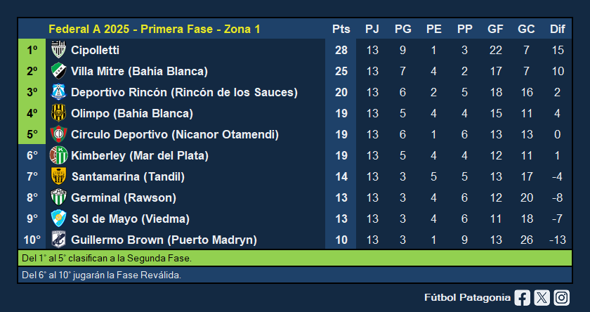 Cipolletti, Deportivo Rincón y Sol de Mayo serán visitantes en el Federal A en una fecha que se jugará entre sábado y domingo en la Zona 1.