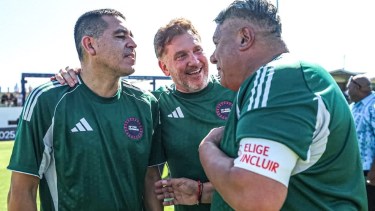 Las imágenes fueron tomadas durante el Torneo de Delegados con Leyendas del Fútbol Mundial, que se llevó a cabo este miércoles en Asunción y participan ocho equipos mixtos con emblemas tanto del fútbol masculino como del femenino.