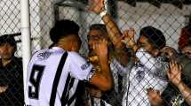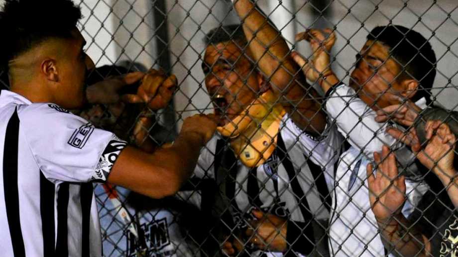 El delantero y el capitán del Albinegro festejaron el gol del triunfo con el alambrado mediante después de que el defensor saliera golpeado y con cuello ortopédico.