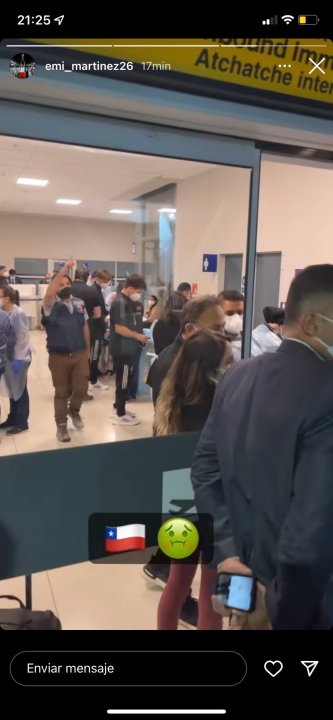 Uno de los más polémicos en su publicación en redes fue Emiliano Martínez. Dibu subió dos historias a Instagram y en una de ellas incluyó una bandera de Chile y un emoji que simula un vómito.