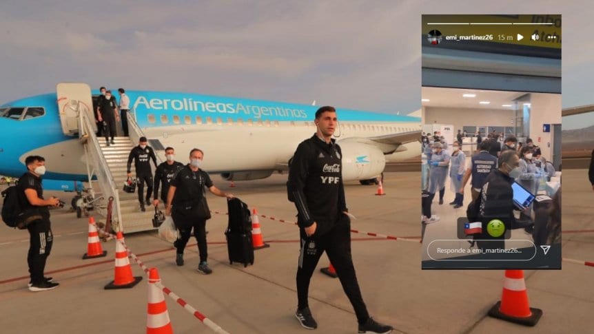 «UH, ENCONTRÓ UN SUGUS» Dibu Martínez bromeó por los controles que está pasando la Selección argentina en su llegada a Calama, para enfrentar a Chile… pic.twitter.com/k6e6Ic0vxc