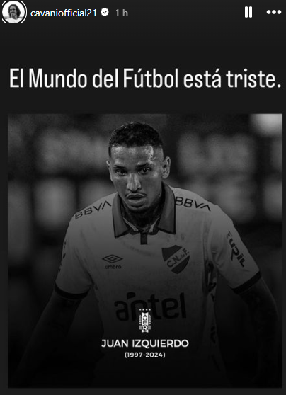 Edinson Cavani, goleador de Boca y socio de Luis Suárez en la selección de Uruguay, no compartió plantel con Juan Izquierdo, pero también se expresó en las redes sociales. «El mundo del fútbol está triste», escribió en delantero en su cuenta de Instagram. Cuando volvió de Europa, Cavani tuvo la posibilidad de jugar en el Bolso, pero finalmente acordó su llegada al Xeneize. Desde Buenos Aires, fue uno de los tantos compatriotas que expresó su dolor.