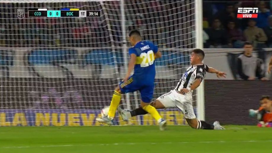 El toque del zaguero xeneize fue leve y dejó la duda si fue suficiente como para cobrar penal. Una jugada fina, como para ver más de una vez.