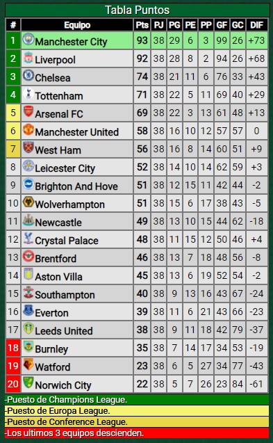 Después fue aguantar y esperar. Liverpool ganó su partido en el final con goles del ingresado Mohamed Salah, que está entre algodones para la final de la Champions, y Robertson en el final. Pero ya no le alcanzó al equipo de Klopp, que se quedó con las manos vacías en la Premier, después de haber ganado la FA Cup hace pocos días.