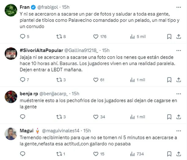 Esta situación quedó evidenciada en un posteo que hizo el club en la red social X, que se llenó de comentarios. “Tremendo recibimiento para que no se tomen ni 5 minutos en acercarse a la gente, nefasta esa actitud, con Gallardo no pasaba”, escribió un usuario.