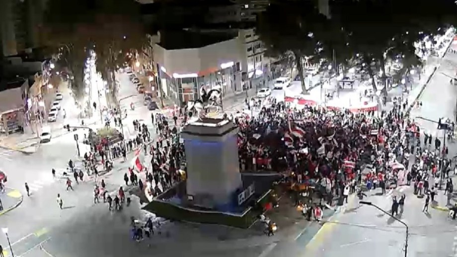 Poco a poco, una vez finalizado el partido, minutos después de las 21, la plazoleta que rodea al monumento más emblemático de Neuquén se fue cubriendo de hinchas, entusiasmados por la reciente conquista.