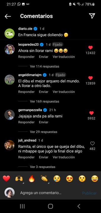 A su vez, Leandro Paredes escribió: «Ahora decilo sin llorar, Rami»; y Germán Pezzella emuló la frase de Lionel Messi y le mandó: «Andá pa´ allá Rami».