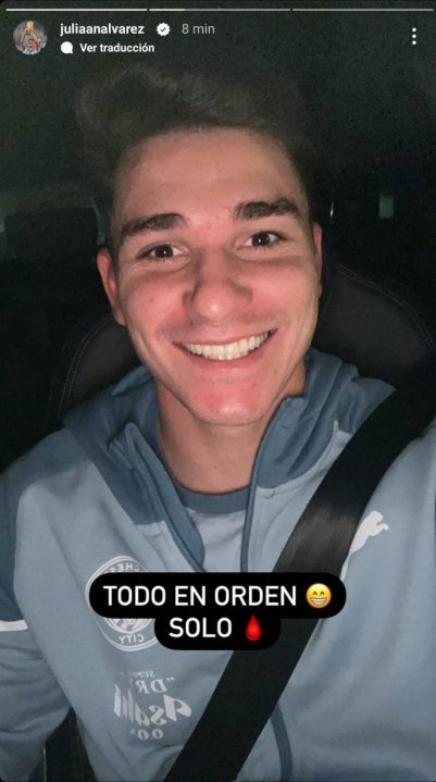 Ante la incertidumbre sobre el estado de Julián Álvarez, un tiempo después del partido, el propio jugador subió una historia a Instagram para llevar tranquilidad con la leyenda: «Todo en orden, solo fue sangre».