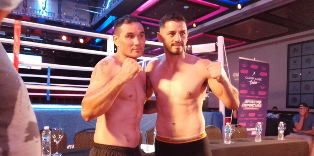 El Niño Godoy, quien presenta un palmarés con 38 triunfos, de los cuales 19 fueron por nocaut y 7 derrotas, no tuvo problemas en la balanza, donde pesó 72,500 kilos, uno menos que Battaglia, con un récord de 13 victorias, 42 caídas y 3 sin decisión.