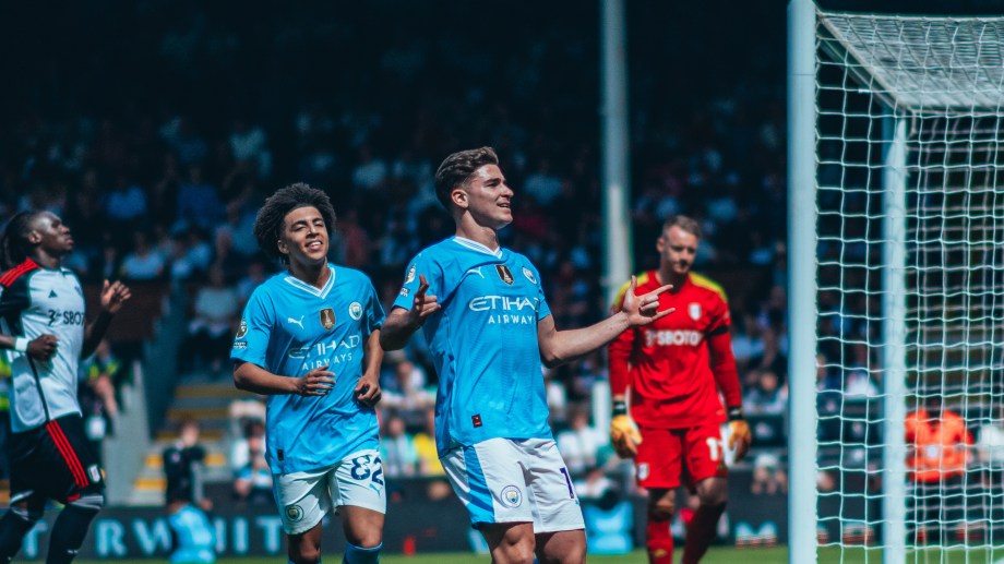 El delantero argentino Julián Álvarez anotó este sábado el tanto que sentenció la goleada de su equipo, Manchester City, sobre el Fulham como visitante por 4 a 0 y dio un gran paso rumbo a la conquista de la Premier League.
