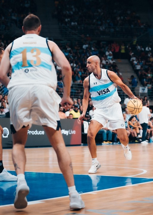 Manu, junto a Luis Scola, Fabricio Oberto, Chapu Nocioni, Pepe Sánchez, Alejandro Montecchia, Walter Herrmann, Gabriel Fernández, Hugo Sconochini, Leonardo Gutiérrez, Carlos Delfino y Rubén Wolkowyski vivieron una noche mágica. También estuvo Rubén Magnano, el padre de la criatura, quien arrancó la noche con un replay de esa inolvidable corrida luego de la palomita de Manu contra Serbia y, claro, escuchó una ovación.