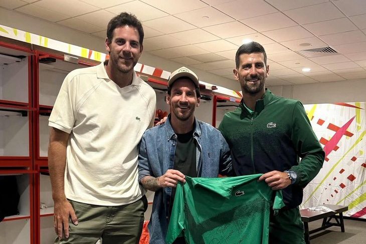 El capitán de la Selección Argentina, recuperado de su lesión, estuvo presente en el duelo del serbio con Grigor Dimitrov por la semifinal del certamen junto a su esposa, Antonela Rocuzzo. Luego del partido posó junto a Nole y Juan Martín del Potro. Los detalles.