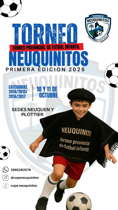 El próximo viernes 10 (feriado) y sábado 11 de octubre se disputará en Neuquén y Plottier la primera edición del Torneo Neuquinitos, una propuesta deportiva que reunirá a equipos de las categorías 2014, 2015, 2016 y 2017. Será un evento histórico, ya que contará con la presencia de clubes de toda la provincia, en una verdadera fiesta del fútbol infantil.
