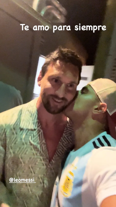 A medida que Messi salía del lugar, el hincha aprovechó la oportunidad y le expresó su amor incondicional con un beso en la mejilla, gritando emocionado: «Leo, te amo, te amo hermano, gracias por tanto».