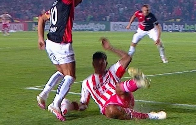 Apenas iniciado el complemento, Unión tuvo un tiro libre a favor en tres cuartos de cancha. En cuanto la pelota se puso en juego, Garcés agarró de la camiseta a Calderón sobre la línea y, con Pitana justo al lado de la jugada, lo soltó dentro área.