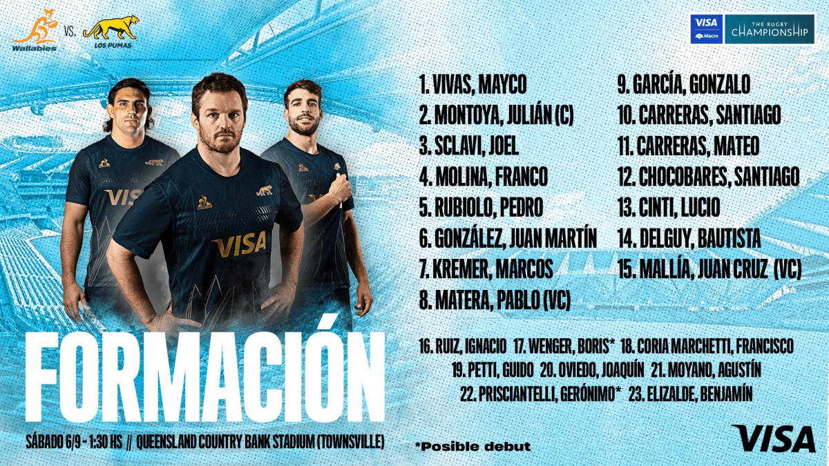 Los Pumas confirmaron la formación para enfrentar a Australia en el Rugby Championship