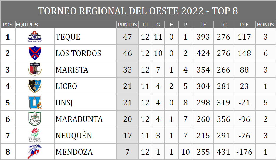 Marabunta perdió de manera categórica con Teque en Mendoza por 59 a 10. Esta derrota bajó a la Hormiga del cuarto al sexto lugar de la tabla. El local se subió a la cima por encima de Los Tordos.