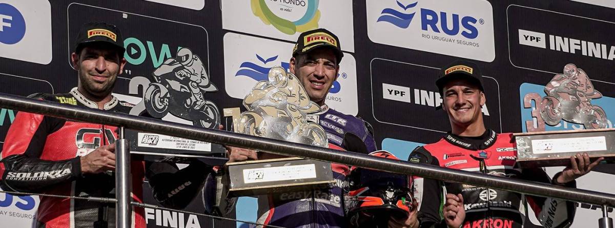 Marco y Martín Solorza lograron el 1-2 en el circuito de Termas, relegando al tercer lugar a Luciano Ribodino en un nuevo capítulo del Superbike Argentino. Gentileza.