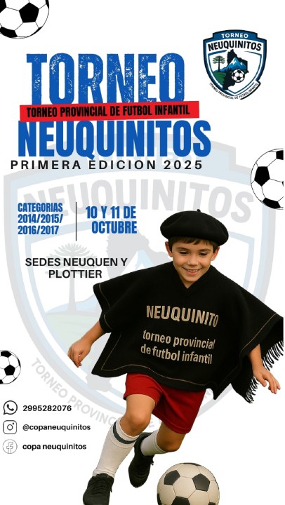 El viernes 10 y sábado 11 de octubre se disputará en Neuquén y Plottier la primera edición del Torneo Neuquinitos, una propuesta deportiva que reunirá a equipos de las categorías 2014, 2015, 2016 y 2017. Será un evento histórico, ya que contará con la presencia de clubes de toda la provincia, en una verdadera fiesta del fútbol infantil.