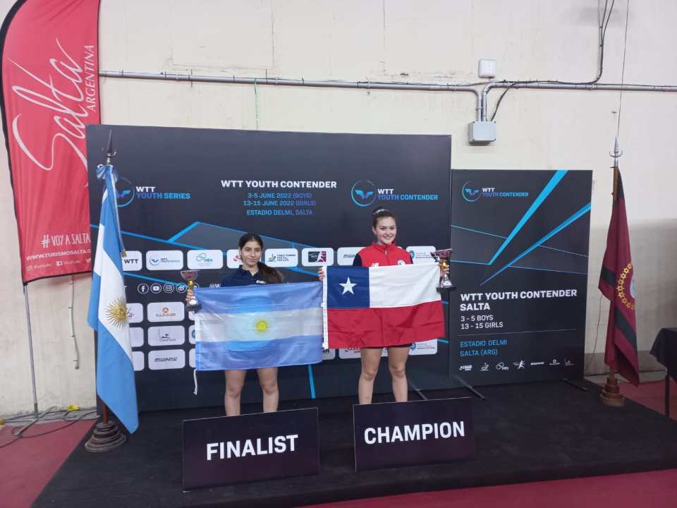 Manu Pereyra perdió la final de U19 con la chilena Sofía Vega y se quedó con la medalla de plata en el certamen que se realizó en Salta por el Circuito Mundial de tenis de mesa. Gentileza.