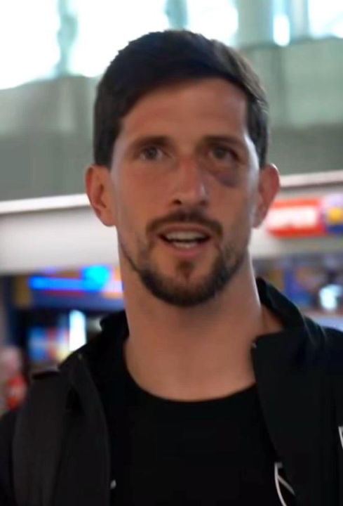 Al llegar al hotel donde se hospedó el Rojo en Santiago, se pudo ver el ojo morado de Rey, que afrontará el duelo con la citada protección.