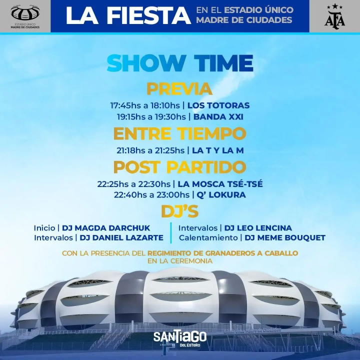 La grilla de los espectáculos para recibir a la selección Argentina en Santiago del Estero: