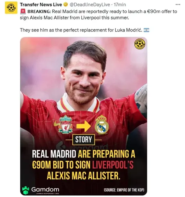 Según trascendió, el Real Madrid prepara una oferta de 90 millones de euros por el ex Argentinos Juniors, Boca y Brighton, aunque desde Anfield habrían dejado claro que no lo dejarán salir por menos de 100 millones. La negociación promete ser intensa, aunque en Madrid confían en poder cerrar el trato en las próximas semanas.