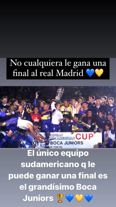 «No cualquiera le gana una final al Real Madrid. El único equipo sudamericano que le puede ganar una final es el grandísimo Boca Juniors», escribió el ex jugador en una historia su cuenta de Instagram.