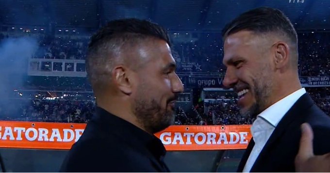 El afectuoso abrazo entre Gandolfi y Demichelis en la previa del partido entre River y Talleres.#LPFxTNTSports pic.twitter.com/oHZ4PUlyi4