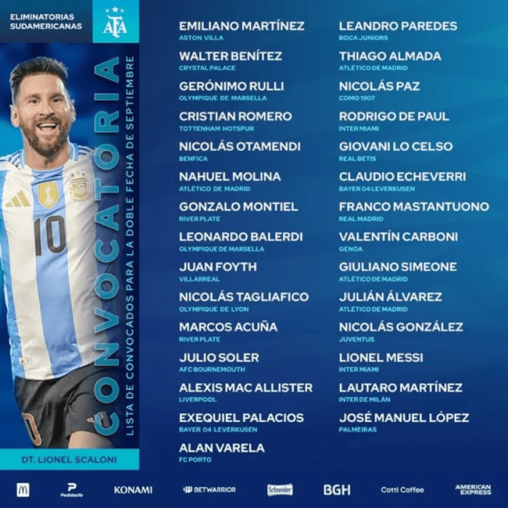 Lionel Scaloni confirmó la lista de convocados para la última doble fecha de Eliminatorias Sudamericanas, en la que Argentina recibirá a Venezuela el próximo jueves 4 de septiembre a las 20.30 y visitará a Ecuador el martes 9 a las 20.