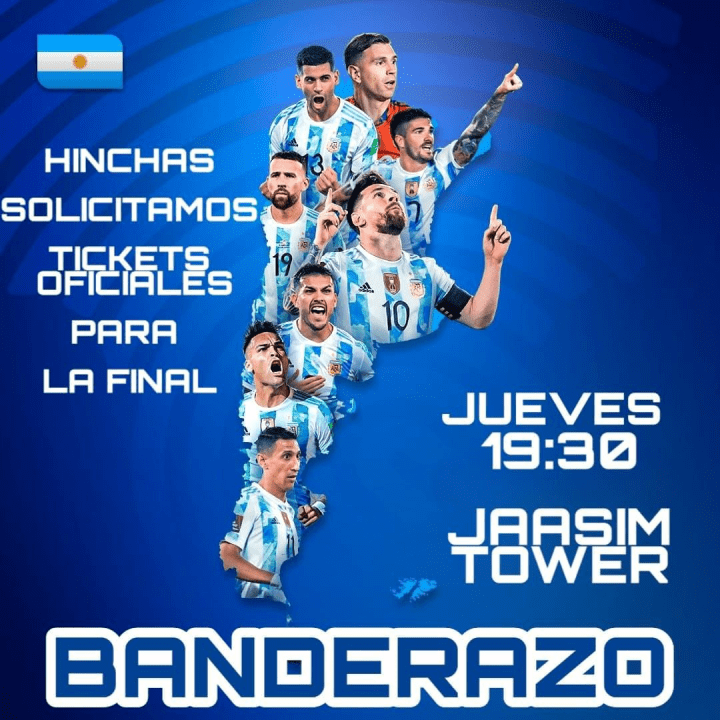 "Entradas a precios oficiales sobran, sólo pedimos que dejen comprarlas a argentinos. Les toca el momento de ayudar para que la fiesta sea completa", dijeron los promotores del banderazo, en el flyer de la convocatoria que se viralizó por grupos de Whatsapp.