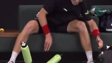 El número 7 del mundo venía jugando mal, perdió su saque y, cuando se sentó en el banco para el descanso, revoleó las botellitas de agua con bronca al piso y debió recogerlas.