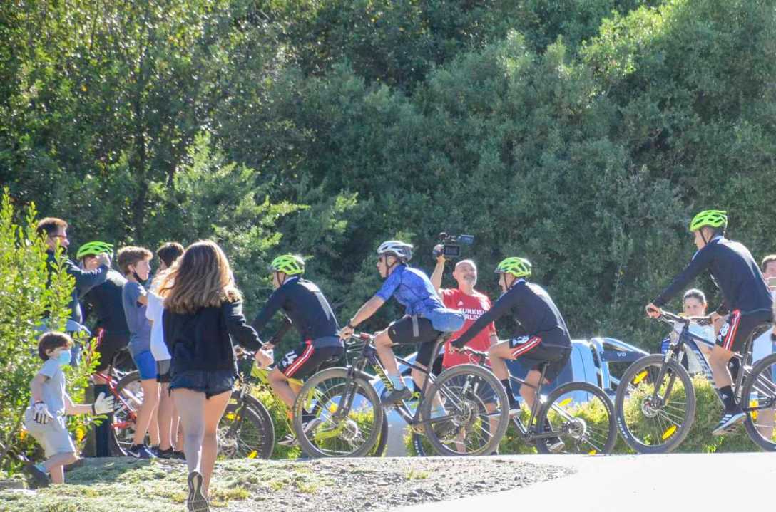 Los jugadores anduvieron en bicicleta por la zona y subieron una empinada pendiente para acceder al hoyo del campo de golf del complejo El Desafío para hacer la rutina de entrenamiento.