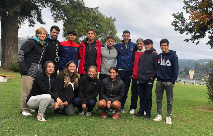 En la pista de la Laguna Grande de San Pedro de la Paz, Región del Biobío, Chile, Vicente Vergauven (Viedma), Joaquín Catalano (Choele Choel) y Valentino Bruno (Luis Beltrán), integrantes de la selección argentina de la especialidad, se miden con los mejores del continente.