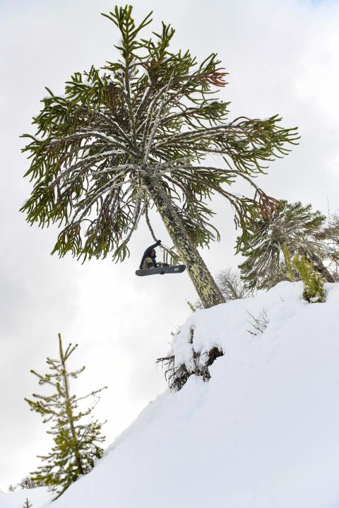 Fernando Natalucci (40 años, del equipo de DC Shoes), su hermano Nicolás (34, Quiksilver), Cristobal Tobal Colombo (17, Quiksilver) y Lila Sanz (27, invitada especial de Roxy) se adentraron en los bosques de araucarias milenarias del cerro El Colorado para un desafío lejos de los centros de esquí y sus comodidades.