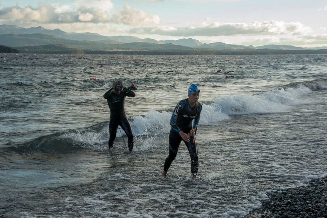 Verónica Iuorno y Guillermo White lograron los mejores tiempos en sus categorías. El viento obligó a modificar el circuito de natación en las frías aguas del lago Nahuel Huapi.