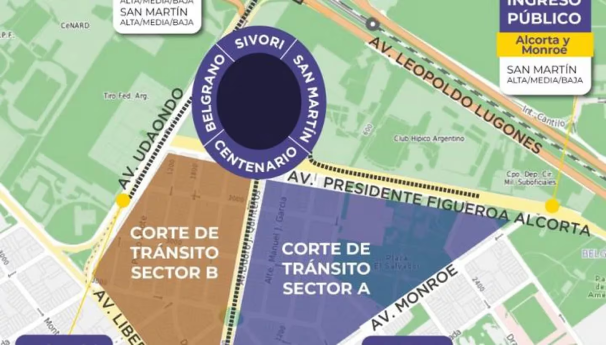 Según indicaron las autoridades porteñas, en el ingreso hubo cuatro troncales según la ubicación en el estadio y también estará disponible el carril familiar, en avenida Del Libertador y Barilari, destinado a menores de edad y a personas con movilidad reducida.