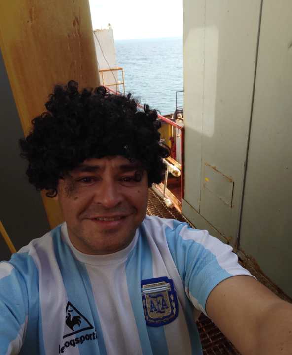 Argentina a la final: así festejó el petrolero de Santa Cruz en el medio del mar con la peluca de Maradona