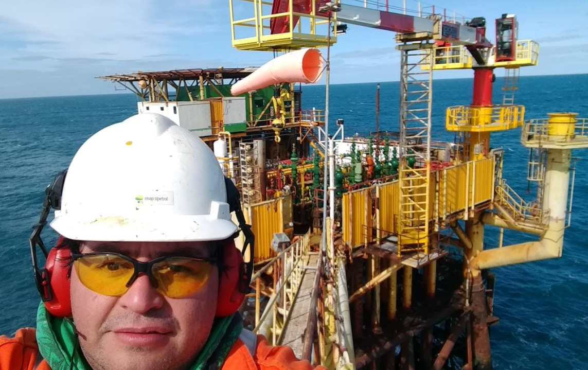 Jorge Petete Burgos tiene 48 años, es de Río Turbio (Santa Cruz), vive en Bariloche hace 10 años, trabaja 14 días de corrido y después tiene 14 de franco. Pero esas dos semanas en su empleo transcurren en la plataforma petrolera off shore en el Estrecho de Magallanes a la que lo llevan en helicóptero a 15 km de la costa desde Cabo Vírgenes, ahí donde nace la mítica ruta 40, junto a sus tres compañeros de turno, que lo dejan mirar solo los partidos de Argentina en el Mundial de Qatar 2022: saben que a veces la pasión lo desborda.