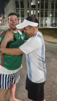 En el Mundial de Qatar 2022 en la víspera del partido decisivo por el grupo C, un argentino y un mexicano cambiaron las camisetas de sus seleccionados nacionales cerca de la cancha del estadio Lusail y se dieron un abrazo mientras coincidían en un mensaje de paz y respeto entre los hinchas de ambas selecciones latinoamericanas.