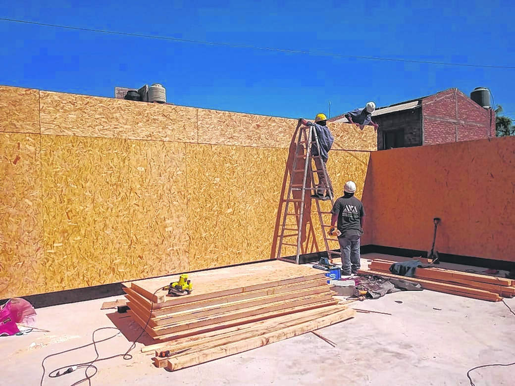 Tal como describe la emprendedora, los paneles no ceden ni se modifican con el tiempo y están compuestos por dos placas de OSB LP de 9.5 mm, unidas a un núcleo de poliestireno expandido de alta densidad (EPS) 20Kg/m³ y 70 MM de espesor. Esto, señala, genera altos niveles de aislación térmica y firmeza estructural. Sus medidas son de 1,22 x 2,44 metros.