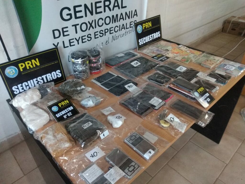 Tras los procedimientos secuestraron de 1,2 kilos de cocaína de máxima pureza; 900 gramos de marihuana, una planta de marihuana de 2 metros, $40.000, 19 teléfonos celulares, tres balanzas y un arma de fuego tipo revolver calibre 22 con varias municiones. También quedaron detenidas dos mujeres y tres hombres, mientras que otras tres personas mayores de edad fueron imputadas por tenencia y comercio de droga.