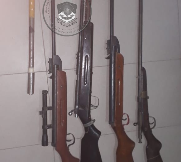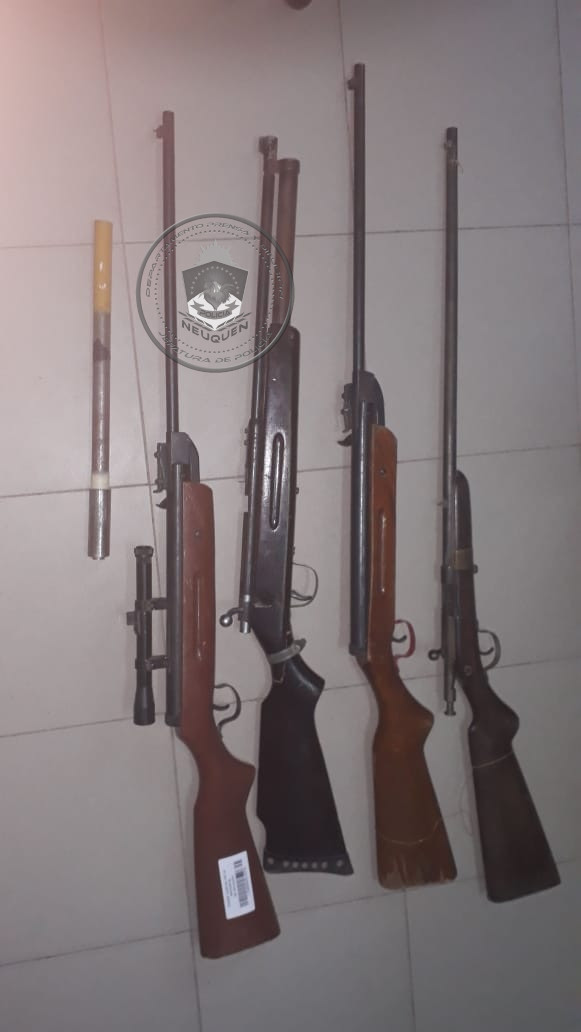 Desde el departamento de Prensa de la policía indicaron que durante la mañana de ayer se dispusieron cuatro órdenes de allanamiento, en los Barrios Cuenca VX, Comodoro Carnagui y Confluencia. Como resultado, los efectivos lograron la demora de tres sujetos de 27, 35 y 39 años, el secuestro de 6 armas de fuego entre pistolas, carabinas y de fabricación casera, y gran cantidad de municiones de distintos calibres.