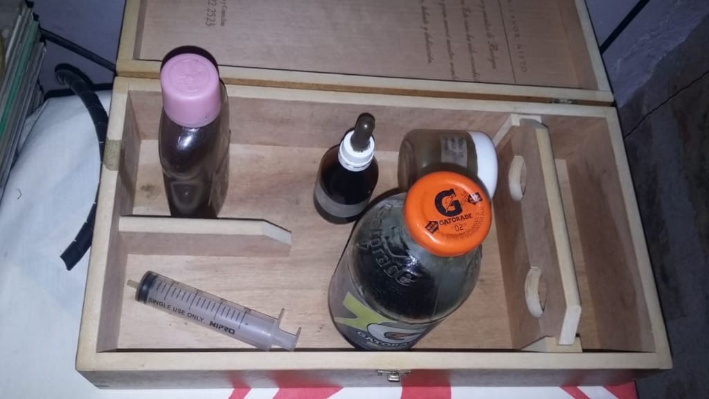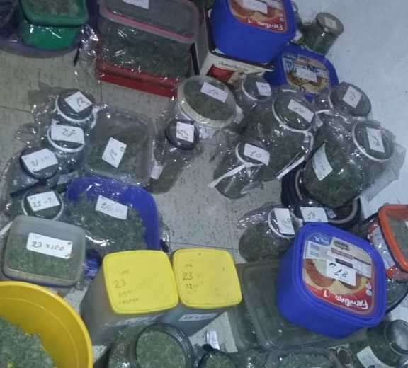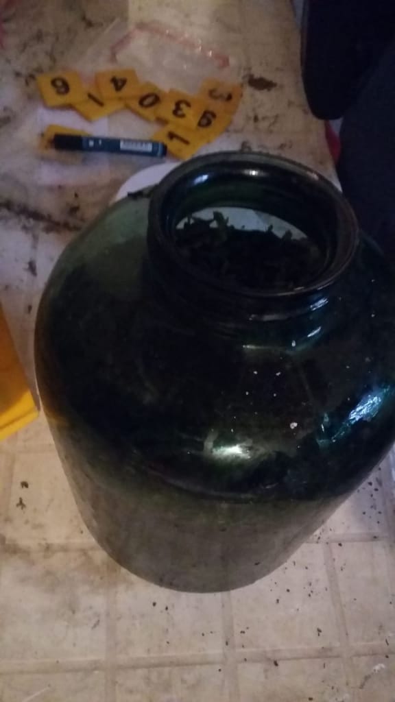 Los que más llamó la atención de los uniformados fue que en el domicilio había 25 frascos de diversas medidas con flores de la misma planta macerando en alcohol, un bidón de seis litros repleto y en las mismas condiciones, 19.200 semillas de la planta, algunos cigarrillos de marihuana y una balanza de precisión. El comisario indicó que «era como una especie de laboratorio donde aparentemente cultivaban, cosechaban, secaban y elaboraban, es probable que realicen venta al menudeó también».
