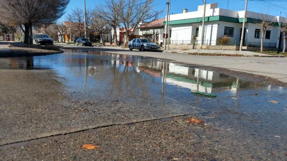 La fuga comenzó hace más de un mes y generó un afluente en dirección norte-sur que continúa a lo largo de Rawson en dirección oeste-este. Los vecinos manifestaron que a pesar de las constantes denuncias la empresa nunca se acercó a revisar el problema.