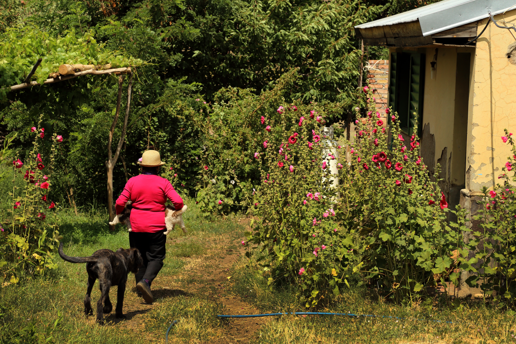 Le gusta cultivar la tierra y muestra orgullosa sus girasoles. “Acá cosechó todo lo que prende”, lanza con su vocecita aguda. Papas, acelga, cebollas, algunas aromáticas se dejan ver de este lado del cerco. Del otro lado, los cachorros siguen llamándola. Ester ya no los escucha, se fue caminando por la huella. Al llegar a la ruta, alguien parará y la acercará a Las Ovejas.
