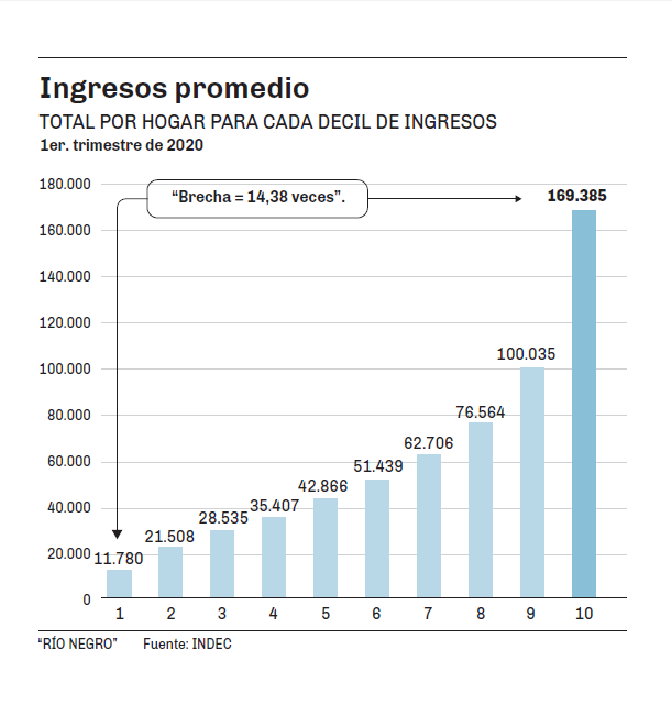 Los datos oficiales para el primer trimestre de 2020, muestran una brecha de ingresos cada vez más alta. La pandemia, implicará aun mayor deterioro.