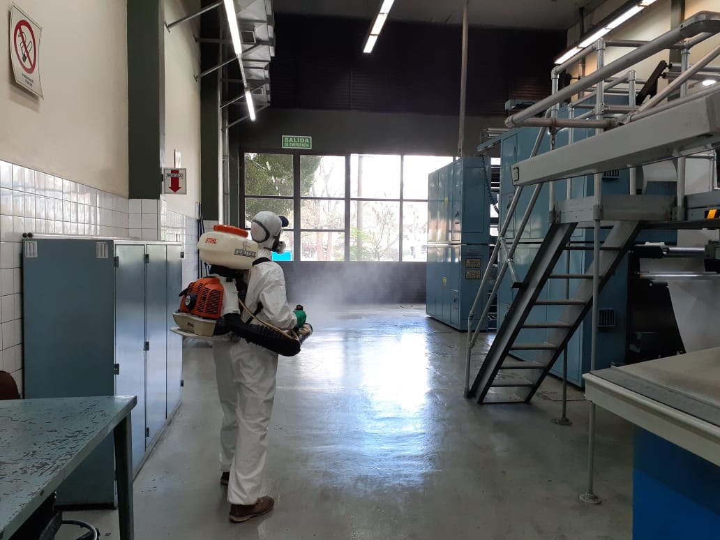 “Nosotros trabajamos con amonio cuaternario de quinta generación. Lo aplicamos con atomizadores eléctricos y con mochilas explosivas de dos tiempos. La gota que sale es pequeña para que al ser tan fina tenga más superficie de contacto. Se aplica en todas las superficies, desde los dos metros hacia abajo, que es donde se tocan los objetos”, dijo Verdecchia.