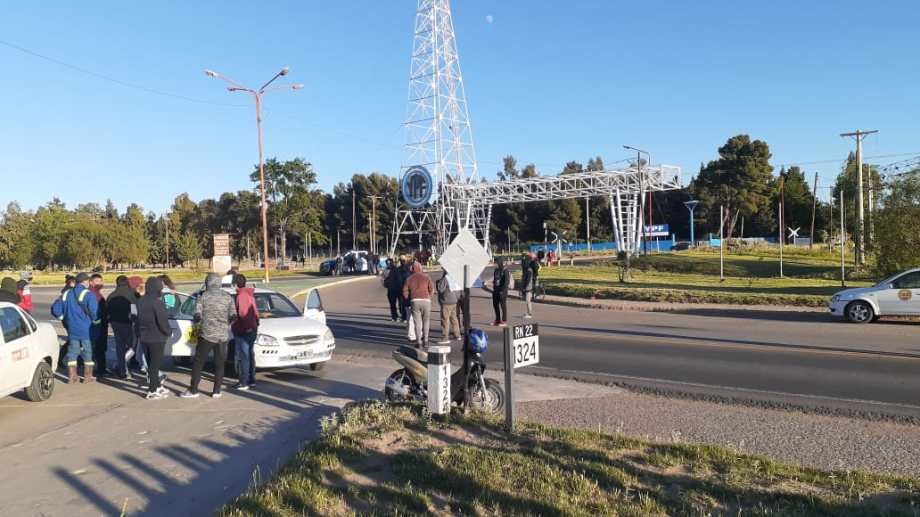 Un grupo de manifestantes entre los que se encuentran desocupados de la actividad petrolera, autoconvocados, taxistas y representantes de la CTA reclaman al gobierno provincial un bono de 20 mil pesos por tres meses. El bloqueo de la Ruta 22 es a la altura de la torre de ingreso a la localidad y en el acceso a la refinería de YPF.